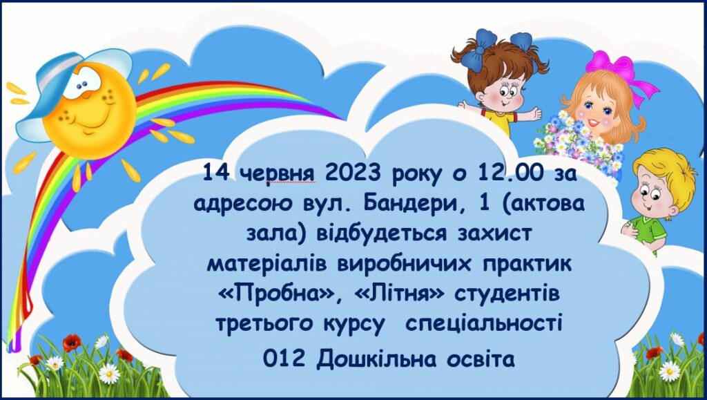 19 травня 2023 року відбулась настановча нарада щодо організації та проведення Літньої практики для студентів ІІІ курсу спеціальності «Дошкільна освіта». Зі вступним словом виступила заступник директора з навчально-виробничої роботи Марта Ярославівна Чупровська, яка ознайомила студентів із наказом щодо організації та проведення практики, Читати далі