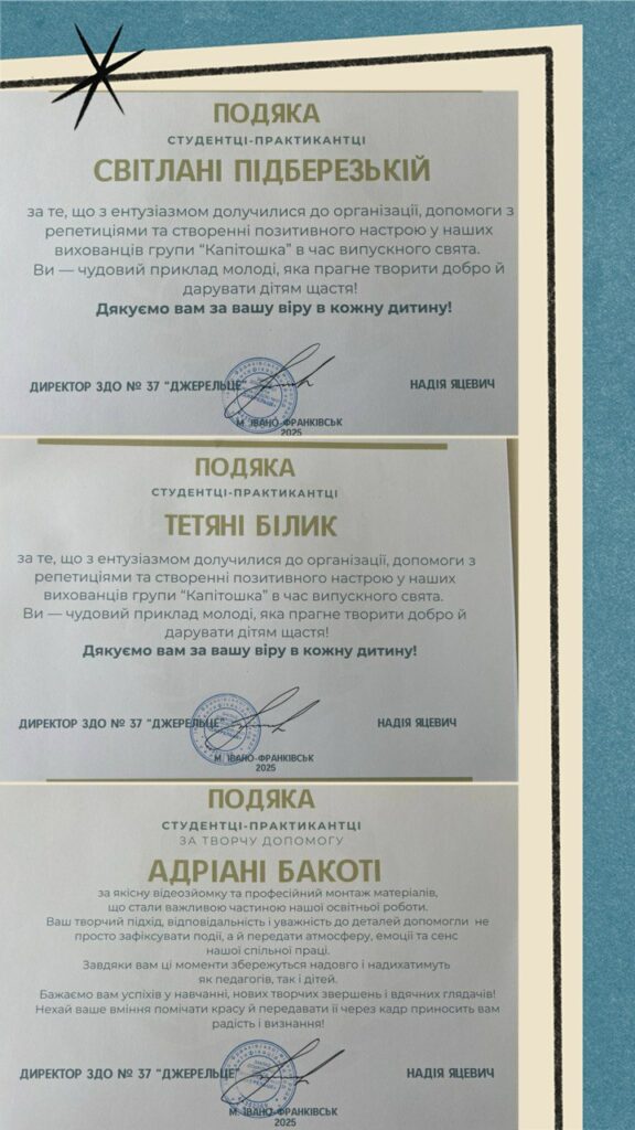 У Івано-Франківському фаховому коледжі імені Василя Стефаника завершилася державна підсумкова атестація здобувачів освіти спеціальності 012 «Дошкільна освіта». Атестація стала підсумком багаторічної навчальної та практичної підготовки, демонстрацією фахової зрілості студентів і підтвердженням їх готовності до професійної діяльності в закладах дошкільної освіти. Читати далі