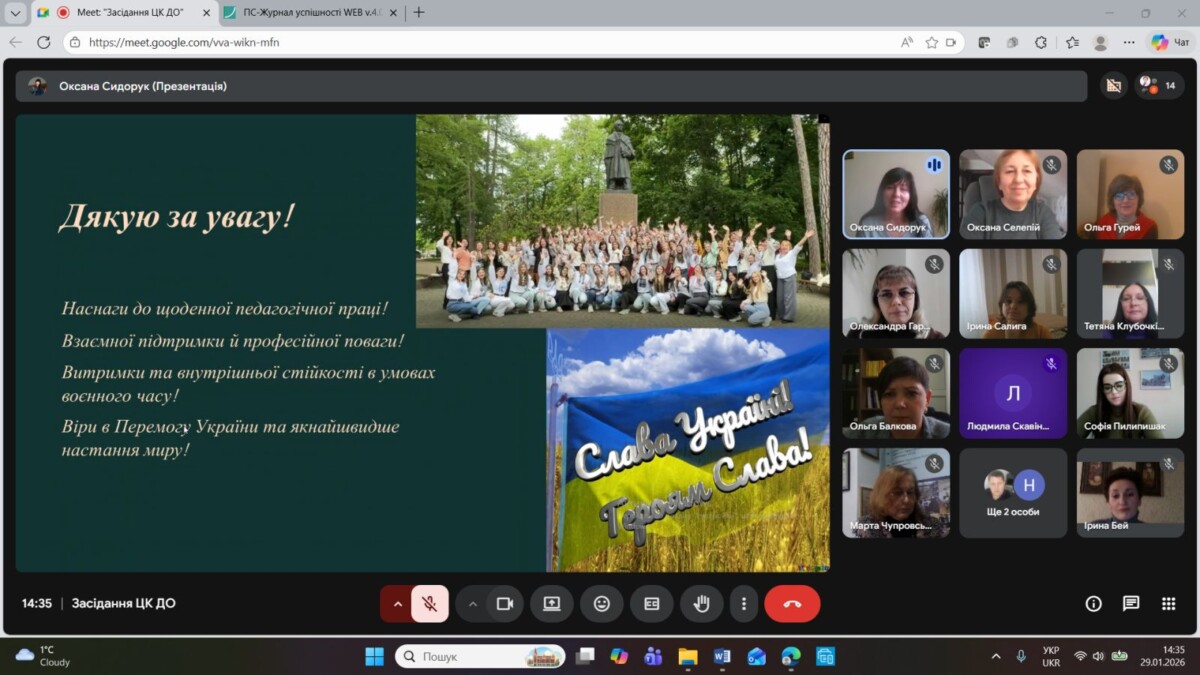 - викладач Ольга Іванівна Гурей поділилася досвідом роботи зі студентською спільнотою щодо національно-патріотичного виховання майбутніх педагогів.