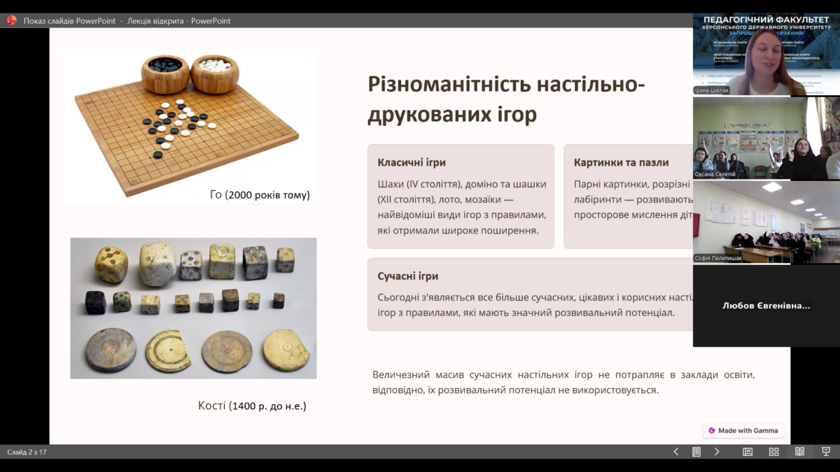Сьогодні для студентів спеціальності А2/012 «Дошкільна освіта» відбулася гостьова лекція на тему: «Формування компетентностей дитини засобом настільно-друкованих ігор».