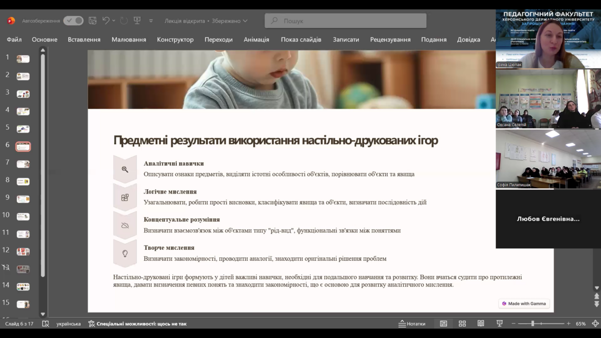 Спікерка заходу – Цюпак Ірина Миколаївна, викладачка кафедри педагогіки та психології дошкільної та початкової освіти Херсонського державного університету – представила майбутнім вихователям сучасний погляд на класичний педагогічний інструментарій.